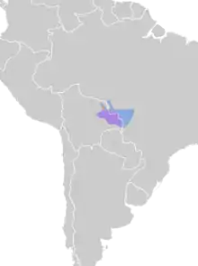 It is found in the Pantanal of eastern Bolivia and adjacent southwestern Brazil. Its natural habitat is subtropical or tropical seasonally wet or flooded lowland grassland. It is threatened by habitat loss.