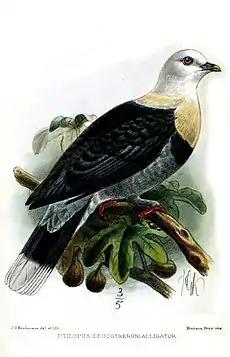 - ↑ BirdLife International (2016). "Ptilinopus alligator". IUCN Red List of Threatened Species. 2016: e.T22691312A93308874. doi:10.2305/IUCN.UK.2016-3.RLTS.T22691312A93308874.en. Retrieved 13 November 2021.