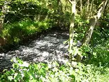 The Black Brook rises near the border of Calderdale and Kirklees next to Scammonden Dam. It flows downwards through Stainland Dean, and then between Greetland and Stainland. Most of the river, at this point, forms a parish border between the parishes of Greetland and Stainland. The Holywell Brook flows into the Black Brook before flowing into the River Calder at West Vale.[1] The combined length of the two brooks is 8.85 miles (14.24 km) and they drain an area of 12 square miles (30 km2).[2]