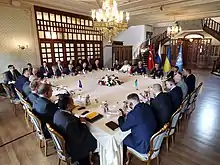 On July 22, 2022, the signing ceremony took place at Dolmabahçe Palace in Istanbul, Turkey.[17] The ceremony marks the first major deal between the warring sides since the beginning of the Russian invasion in February.[18] However, it was not a direct agreement between Russia and Ukraine. Instead, Ukraine signed an agreement with Turkey and the UN, and Russia signed a separate "mirror" agreement with Turkey and the UN.[19]