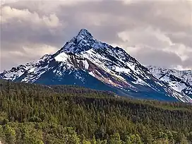 The Blackhorn name was submitted for consideration in April 1933 by Henry Snow Hall (1895–1987), Harvard Mountaineering Club, following his 1932 ascent.[8] Hall wrote: "I have suggested the names Whitesaddle and Blackhorn for the two peaks which are prominently visible down the Homathko valley from the automobile road passing Tatla Lake. The names seem appropriate for this cattle ranching country because of the appearance of the peaks themselves. The right hand peak of the two, a dark rock dome, has a white glacier flowing from the summit down the face of the peak toward the observer which reminded me at once of a white saddle. The left hand peak, a sharper black rock summit might easily be imagined to look like a saddle horn or black horn." The landform's toponym was officially adopted January 9, 1934, by the Geographical Names Board of Canada.[5]