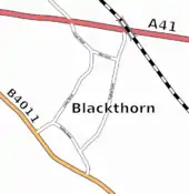 Iron Age pottery has been found at Blackthorn. The course of Akeman Street Roman road passes through the parish, which may explain why Roman pottery has also been found here.[2] The stretch of Akeman Street through the parish is now part of the A41 trunk road.