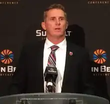 Robert Blake Anderson (born March 24, 1969) is an American football coach and former player who is currently the head coach at Utah State University.[1][2] Anderson previously served as the head coach at Arkansas State University from 2014 to 2020, the offensive coordinator at the University of North Carolina from 2012 to 2013, and the offensive coordinator, run game coordinator and quarterbacks coach at the University of Southern Mississippi from 2009 to 2011.[3][4]