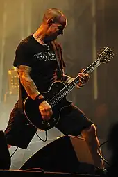 Former guitarist Scott Danough has said that he is influenced by metal and hardcore bands, like At the Gates, Slayer, Cradle of Filth, Integrity and Earth Crisis.[90] Vocalist Brandan Schieppati has mentioned American thrash metal bands as an influence on Bleeding Through, such as Testament or Exodus.[91] In an interview, guitarist Brian Leppke added Cro-Mags, Entombed, Crowbar and Pantera to the list of influences.[92] Keyboardist Marta Peterson is the one who brings industrial and goth inspirations to the band's sound.[93]