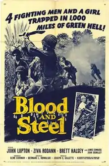 Blood and Steel is a 1959 American drama film directed by Bernard L. Kowalski and written by Joseph C. Gilette. The film stars John Lupton, James Edwards, Brett Halsey, John Brinkley, Allen Jung and Ziva Rodann. The film was released on December 30, 1959, by 20th Century Fox.[1][2][3]