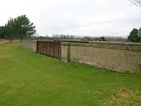Located adjacent to the Cadgers' Racecourse on the town moor, this station was open for restricted used by 1893 as Bogside Platform.[1] It was renamed Bogside and opened to the general public sometime before September 1909. The station closed between 1 January 1917 and 1 February 1919 due to wartime economy,[1][2] and upon the grouping of the L&AR into the London, Midland and Scottish Railway in 1923 it was renamed Bogside Moor Halt on 2 June 1924.[1] Trains only called at this station upon request.[2] The station closed to passengers on 28 July 1930,[1] but the line saw use for freight trains going to Irvine until 1939.[2]