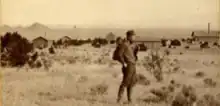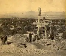 - ↑ Secord & Milford claim that the image is of Bonanza City.[7] The specific stenograph this image was copied from labeled the picture as the "Marshall Bonanza Property";[8] this was the name of a single-shaft mine located in the Los Cerrillos Mining District.[9]