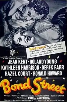 Bond Street is a 1948 British portmanteau drama film directed by Gordon Parry and based on a story by Terence Rattigan. It stars Jean Kent, Roland Young, Kathleen Harrison, and Derek Farr.[3] The film depicts a bride's dress, veil, pearls and flowers purchased in London's Bond Street—and the secret story behind each item.[4]