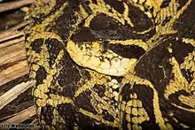 Bothrops jararacussu, commonly known in English as the jararacussu, is a highly venomous pit viper species endemic to South America.[1][2] It is one of the most dreaded snakes in South America and can grow up to 2.2 metres (7.2 ft).[3]