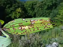 | Phyllosticta cruenta on leaf of Polygonatum odoratum | |