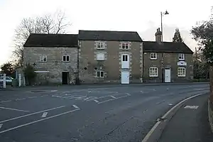 Grade II listed building, supposedly built with materials taken from the castle, particularly the "arrow slit" windows.[2]