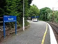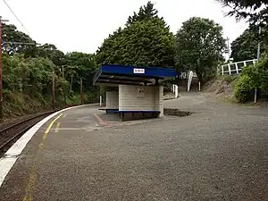 Box Hill railway station is one of eight stations on the Johnsonville Branch, a commuter branch railway north of Wellington in New Zealand's North Island. It serves the suburbs of Khandallah and Te Kainga. It is the only station on the line to be set below street level, and one of four on the line which is on a curve. The station is usually called Box Hill, but is signed as Boxhill on the platform signs.