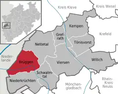 Brüggen is a municipality in the district of Viersen, in North Rhine-Westphalia, Germany. It is situated near the border with the Netherlands, on the river Schwalm, approx. 15 km south of Venlo and 20 km north-west of Mönchengladbach.