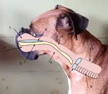 This diagram illustrates what the airway structure looks like in a brachycephalic dog; in this case, a Boxer.