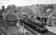 With the development of signalling systems by the GWR, a signal box, with a 30-lever frame, was built to the west of the station and goods shed in 1877.[2] At the same time another signal box, controlling the Greenland Mills level crossing to the east of the station.[2]