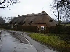 The parish contains a total of seven Grade II listed buildings and one Grade II* listed building—the Church of All Saints.[17] Some of the oldest parts of the church date from the 13th century, although the structure was virtually rebuilt afresh in 1877. The church roof consists of red tiles with a small broach spire and a wooden turret. The walls are made of flint with stone dressed buttresses and the windows date from the Restoration period.[18] Other listed buildings in the vicinity include Southwood Farmhouse, Manor Farmhouse and the Upper Farmhouse. Southwood Farmhouse is two storeys high and dates from the 18th century. Its walls are made of red brick with cambered floor openings and its roof is steeply tiled.[19] Manor Farmhouse lies to the south of the village and consists of a near-identical design with Southwood Farmhouse, although it was probably constructed in the early 19th century.[20] The Upper Farmhouse lies in the centre of the village and is a house of mixed periods. The building itself dates from the 17th century, though expansions were made in the 18th and 19th centuries. The house has interior framing and a Victorian lighting system. Its taller expansions were made in the 18th century, and in between the expansions lies a 19th-century gable with a brick porch at its north side.[21]