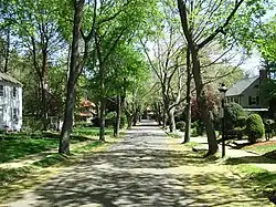 The Brae Burn Road Historic District is a residential historic district on Brae Burn and Windermere Roads in Newton, Massachusetts. It encompasses as modest residential subdivision that was laid out in the then-rural area of Auburndale in 1911. Many of its houses were designed by the regionally notable firm of Gay & Proctor, and represent a well-preserved collection of modestly scaled Craftsman and Colonial Revival style houses. The district includes 26 houses.[2] The district was listed on the National Register of Historic Places in 1990.[1]