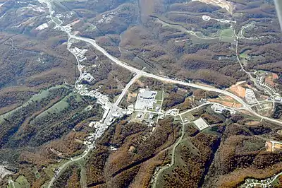 Branson West Airport,[10] also known as Branson West Municipal Airport,[11][12] is a city-owned, public-use airport located two nautical miles (3.7 km) west of the central business district of the Branson West.[10] The airport is also known as Emerson Field, named for Robert Emerson, an aviator and former owner of the property.[12]