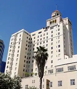 In 1938, Hilton opened the Sky Room atop the hotel, and it became one of the most popular restaurants gathering spots in Southern California.[11] Movie stars such as Clark Gable, Errol Flynn, Rita Hayworth, Cary Grant and John Wayne were said to have been customers at the Sky Room during the Hilton years.[11] One customer recalled the Sky Room as follows: "It was a dating place, like the Brown Derby and Coconut Grove. It was the place to go."[12]