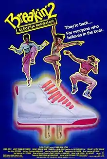 Breakin' 2: Electric Boogaloo is a 1984 American dance musical film directed by Sam Firstenberg.[3] It is a sequel to the 1984 breakdancing film Breakin'. Electric Boogaloo was released seven months after its predecessor by TriStar Pictures. In some international locations the film was released under the title Breakdance 2: Electric Boogaloo. Another sequel, Rappin' (also known as Breakdance 3) was made but had an unconnected plot and different lead characters – only Ice-T features in all three films.