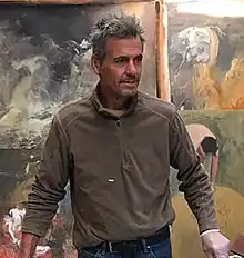 O'Connor's paintings have been described as socio-political narratives.[4] He renders figurative subjects within enigmatic situations.[5] O'Connor has described his work as "the beautiful mess" of "grappling with the world" and attempting to make sense of it.[3] The art writer, Diane Armitage wrote of O'Connor's work, “O’Connor is a gifted realist painter whose increasingly dark vision continues to expand as he adds to his narrative of millennial observations...what O’Connor does in his work is pose questions about our complicity with the forces of degradation that seem to increasingly govern our fate.”[6] He has exhibited his work nationally in museums and galleries[2][7] including the Albuquerque Museum, the Harwood Museum, the New Mexico Museum of Fine Arts, the San Antonio Museum of Art, the Riverside Museum of Art among other venues.[8]