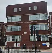 The College was founded as the British College of Naturopathy and Osteopathy (BCNO) in 1936.[1] Its original site was bombed in 1942 during World War II and the naturopathic pioneer, Stanley Lief, founder of Champneys Spa, donated a house in London’s Hampstead as a new campus.[2] This building, which is now named Frazer House and is Grade II-listed, is still the core of the BCOM campus. The college was renamed to the British College of Osteopathic Medicine (BCOM) in 2002. In 2021 BCOM merged with the European School of Osteopathy (ESO). BCOM and ESO are part of the BCNO Group. Its patron is Her Royal Highness Princess Eugenie[1]