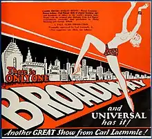 Broadway is a 1929 film directed by Paul Fejos from the 1926 play of the same name by George Abbott and Philip Dunning. It stars Glenn Tryon, Evelyn Brent, Paul Porcasi, Robert Ellis, Merna Kennedy and Thomas E. Jackson.[1]