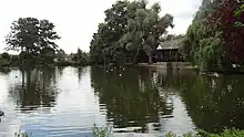 Arthur Mee described it as "one of the most charming and varied in all the London area".[3] The park has a variety of wildlife habitats, including the lakes, some small woods and magnificent oak trees. Aquatic plants include rigid hornwort, which is rare in London. There are also breeding birds such as Canada geese, mallard, tufted duck, coot and moorhen.[1] There used to be a running track at the North East of the park.[5] There is a community run cafe staffed by volunteers.[6]