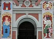 Portal of the House of Blackheads in Riga with reliefs of St. Mary and Saint Mauritius.