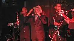 Many of the Cuban musicians who featured on the album were at their musical prime in the 1940s and 1950s. After the success of the 1997 record they became known in Cuba as "Los Superabuelos" (the Super-Grandfathers).[24] Juan de Marcos González, a Cuban folk revivalist who was younger than the bulk of performers introduced Cooder to veteran singer Ibrahim Ferrer. Ferrer (1927–2005) had been lead vocalist for bandleader Pacho Alonso, and also sang for Beny Moré, Cuba's most prominent performer in the 1940s, before his soft singing style fell out of fashion.[25] Having found the semi-retired seventy-year-old Ferrer taking his daily stroll on the streets of Havana and shining shoes for extra money, González signed him up for the project. Cooder later described the discovery as something that happens "perhaps once in your life", and Ferrer as "the Cuban Nat King Cole".[26] Ferrer became a prominent member of the group, and the success of the record was attributed in part to the popularity of his vocal performances.[26] The singer went on to record a number of successful solo albums and performed with contemporary acts such as the Gorillaz before his death in 2005 at the age of 78.[27]