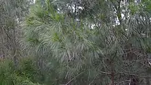 The vegetation of Bungonia National Park is extensive and with most species occurring throughout the Southern Tablelands region. Bungonia is known to contain broad-leaved peppermint (Eucalyptus dives), white gum (Eucalyptus wandoo), grass trees (xanthorrhoea), red stringybark (Eucalyptus macrorhyncha), and large amounts of black ash (Eucalyptus sieberi) forest. Eucalyptus dominate the landscape, especially on the main plateau. In colder sections of the park, snow gum (Eucalyptus pauciflora), and snow grass (Poa sieberiana), thrive, particularly in winter.[6] Like much of the southern portion of the Great Dividing Range, black she-oak (allocasuarina littoralis) is common to lower canopy and regeneration areas. There is also some restricted growth of the argyle apple (Eucalyptus cinerea), known for its soft blue foliage.