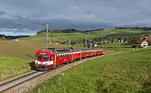 EBT RBDe 4/4 I push-pull train near Biglen.