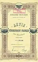 Share certificate of the Burgdorf-Thun-Bahn of 1 October 1898