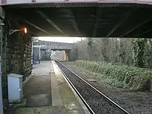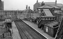 Burnley Barracks railway station is in Burnley, England, on the East Lancashire Line 12-mile (800 m) west of Burnley Central railway station. Following the singling of the track in December 1986, Burnley Barracks has one platform in use, with only a basic shelter in place, and no other buildings on the platform.