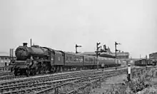 By 1948 the depot had 111 locomotives allocated to it. With the arrival of diesel locomotives, a reorganisation of motive power districts in the London Midland Region took place in September 1963.[16] Under this, the former Nottingham (16), Derby (17) and Toton (18) divisions were amalgamated, with Toton as the main shed for the division; this was coded 16A,[16] and Burton-on-Trent became 16F.[17] Steam traction was removed from this depot in September 1966 [17] and it closed to steam in 1968, but carried on for diesel locomotive fuelling and stabling.