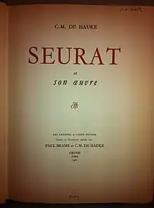 De Hauke was the author of the complete catalogue of Georges Seurat, published in 1961.[15][16] He gave his collection of French drawings to the British Museum.[17]