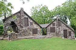 The C. E. Foster House is a historic house on Skyline Drive (Arkansas Highway 88) in Queen Wilhelmina State Park, located in central western Arkansas. It is a rustic stone structure, with two parts connected by a breezeway, located just outside the park entrance on the north side of the highway. It was built in 1931 by Carlos Hill and Phil Lance, and sold soon afterward to C. E. Foster, an Oklahoma oil businessman, who bought it for use as a summer house. It is one of four houses built by Hill on Rich Mountain, and is the best-preserved of the two that survive. In the 1960s the house was operated as a tourist attraction known as the "Wonder House"; it was taken over by the state in 1971.[2]