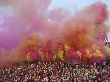 A 2011 survey has shown that CFR Cluj has the fourth-largest number of supporters in Romania.[27] They have many fans in Cluj-Napoca, but also in some other parts of the country. Since the 2014 withdraw of important groups such as "Patriots" and "Commando Gruia", the fans have a single big group called "Peluza Vișinie", which consists of former members of older groups such as "Romaniacs", "Juvenes", "Gruppo Gara", "Valacchi", "Pride 1907", "Nostra Famiglia", and "1907". There is another group of supporters which consists of ethnic Hungarians who currently sit in the Tribuna 1 sector of the stadium. Their group is named KVSK, which is the Hungarian name of CFR.They had such major conflicts with the Romanians ultras group 'Peluza Vișinie' and decided to go to matches alone. Their support is less vocal and visible, but they are a consistent part of the active fans.