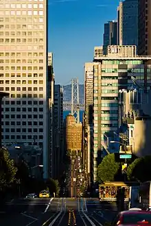 California Street is a major thoroughfare in San Francisco, California. It is one of the longest streets in San Francisco, and includes a number of important landmarks. It runs in an approximately straight 5.2 mi (8.4 km) east–west line from the Financial District to Lincoln Park in the far northwest corner of the city.