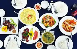 Khmer cuisine can be classified into rural, elite and royal cuisine,[3] although the difference between the royal and popular cuisine is not as pronounced as in the case of Thailand and Laos.[4] The Khmer royal dishes use more varied and higher quality ingredients, and contain more meat.[3]