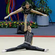 ![]() Camille Curti and Alexis Martin at the 2014 Acrobatic Gymnastics World Championships | |