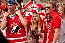 In a Nanos Research opinion poll taken in 2019, more than 80 per cent of Canadians viewed the UK as a positive or somewhat positive partner for Canada; higher than any other country asked in the poll.[40] Nanos Research conducted another survey asking the same question in 2021 and found similar results; with over 80 per cent of Canadians holding a positive or somewhat positive view of the UK, more than any other country asked in the poll.[41] Other polling firms have also found Canadians viewed the UK positively. In a Research Co. opinion poll conducted in 2020, 78 per cent of Canadians said they held favourable views for the UK, higher than any country polled in the survey.[42] Another 2020 poll taken by Angus Reid Institute found 83 per cent of Canadians held favourable views of UK, ahead of any other country in the poll.[43]