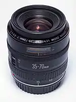 The Canon EF 35-70mm f/3.5-4.5 is an EF mount wide-to-normal zoom lens. It is one of the first lenses in the Canon EF series. It has the same zoom system and 9 lenses in 8 groups layout as the Canon New FD 35-70mm f/3.5-4.5[1] although it is unclear whether the actual optical design is identical.