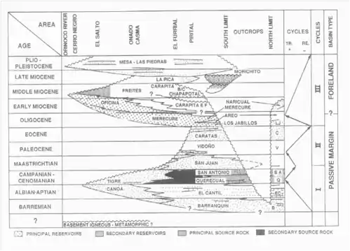 The main source rocks for the Carabobo field are the Upper Cretaceous Querecual formation and San Antonio formation.[9]