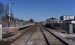 The station has two staggered platforms, there is a level crossing on Victoria Road, hence the staggered platforms to minimise delay to road traffic, and Carlton's centre is a considerable distance further away than Netherfield's, but the nearby Netherfield railway station on the neighbouring Nottingham-Skegness line had already taken that name.