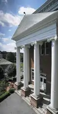 Carnegie Hall, Inc.’s original structure was designed by architects Barrett & Thompson in 1902 in the Georgian Revival style, characterized foremost by its Ionic order portico with pediment, shouldered architrave trim, tall first floor windows and cornice with dentils.[1] Keeping with this style, the remainder of the structure is composed of simple, rectangular blocks with flat roofs.[2]