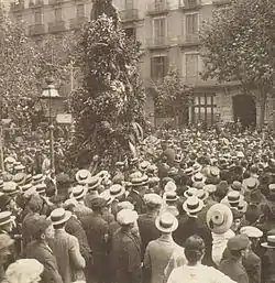 The mere possibility of the granting of a Statute of Autonomy for Catalonia provoked the immediate reaction of Spanish nationalism, which deployed a strong anti-Catalanist campaign based on clichés and stereotypes about Catalonia and the Catalans, but which managed to mobilize thousands of people who protested in Madrid and other cities.[15] The campaign was initiated by the so-called trust of the liberal press of Madrid formed by the newspapers El Liberal, El Heraldo de Madrid and El Imparcial, which was soon joined by the conservative daily ABC, the newspaper with the largest circulation in Spain. Various employers' organizations, some of them linked to the liberal sector headed by Santiago Alba, called for a large demonstration in Madrid, accompanied by the closure of stores, which brought together more than 100,000 people and had an enormous impact on public opinion —the newspaper El Imparcial headlined on its front page: "Madrid's protest against the separatism of the Catalans of the League"—. The campaign also included the boycott of Catalan products, as would happen in 1932 when the Cortes of the Second Spanish Republic debated the draft Statute of Autonomy of Catalonia.[24]