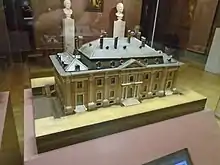 In 2007 the fr: Centre des monuments nationaux took over management of the building and undertook a series of restoration works. In 2012 the orangery was restored and in 2013 structural work was undertaken in the chapel. From 2015 to 2018, restoration was ongoing. Parquet floors, doorframes and roofing were removed and a temporary canopy covered the building to protect it from bad weather.[8] Work on the structure and the interior was informed by reference to a very accurate model, made by a servant of Voltaire, bought by Catherine II of Russia and kept in Saint Petersburg, along with measured plans by the architect Leonard Racles and samples of upholstery and fabrics.[9] On May 31, 2018, after three years of closure, the house was formally reopened by President Emmanuel Macron.[10][7]