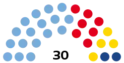 It comprises 30 legislators, elected in a single multi-member district through proportional representation every four years. Elections employ the D'Hondt system and a 3% electoral threshold.[1]