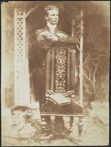 In the Disruption of 1843 he left the established Church of Scotland to join the Free Church of Scotland. He then became minister of the New North Free church in Edinburgh, originally housed in Brighton Stret Chapel then moving to a purpose built church at the junction of Forrest Road and Bristo Place. He then lived in a flat at 15 Buccleuch Place, near George Square, Edinburgh.[7] The church was completed in 1849 and he remained there all his life. It was designed by Thomas Hamilton.[8] It is now known as the Bedlam Theatre.[9]